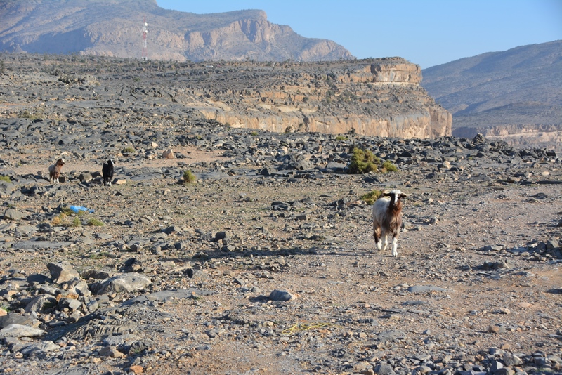 Zbudili smo se v vetrovno jutro in začeli s pospravljanjem šotora. Še prej smo pregledali šotor in ugotovili kar nekaj posledic močnega vetra: zlomljena palica, odtrgano platno na baldahinu, zlomljene plastične nosilke za palice. Na gorovju Jebel Shams se obiskovalci najpogosteje odpravijo na triurni pohod Balcony trail, ozko pot, s katere se odpirajo pogledi 1000 m v globino do zapuščene vasice As Sab. Simon se je odpravil na pohod, midva z Jakobom pa sva med tem časom raziskovala vasico, lovila koze, se sprehajala in se igrala.